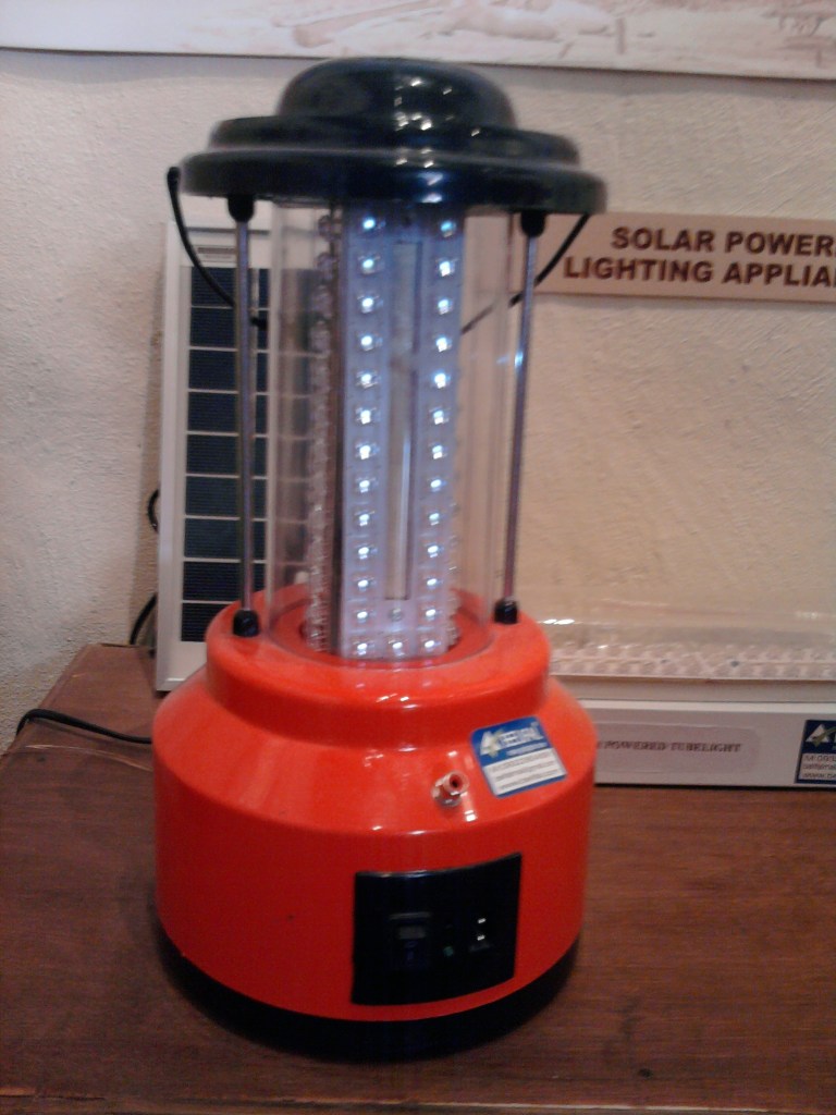 Technically powered by batteries, solar lanterns rely on the power of the sun to charge their power source. Solar cells included with the lantern convert light into electric power. That electric power is then used to light an LED.