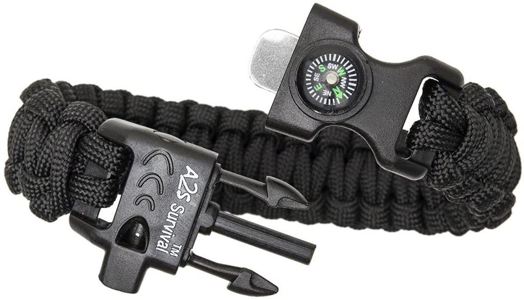 Now, the good news is you don’t need to carry a roll of 550 in your pocket. Having the paracord fashioned into a functional item you wear is a much better option. There are simple paracord bracelets available in addition to more elaborate gear with a compass and other onboard tools.